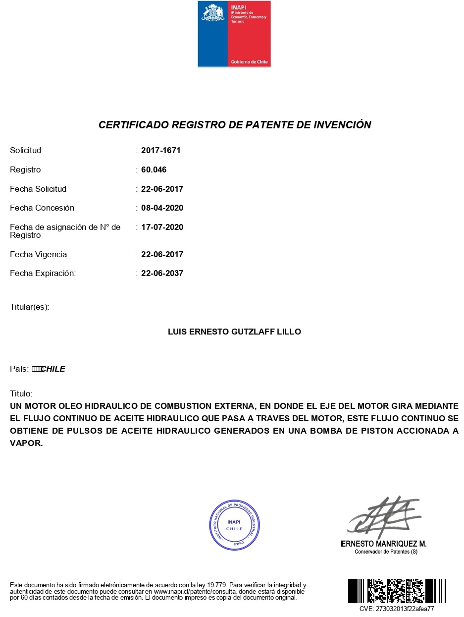 3 patentes las cuales trabajando en conjunto, forman un motor a